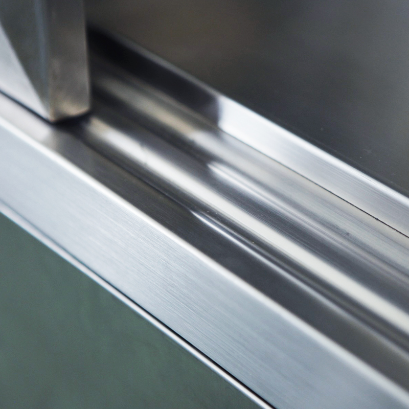 廠,實驗室等各種小型器械的保管和存放,采用sus304不銹鋼板制作,上層為玻璃門,柜體內(nèi)部為圓弧造型,無死角易于清潔。