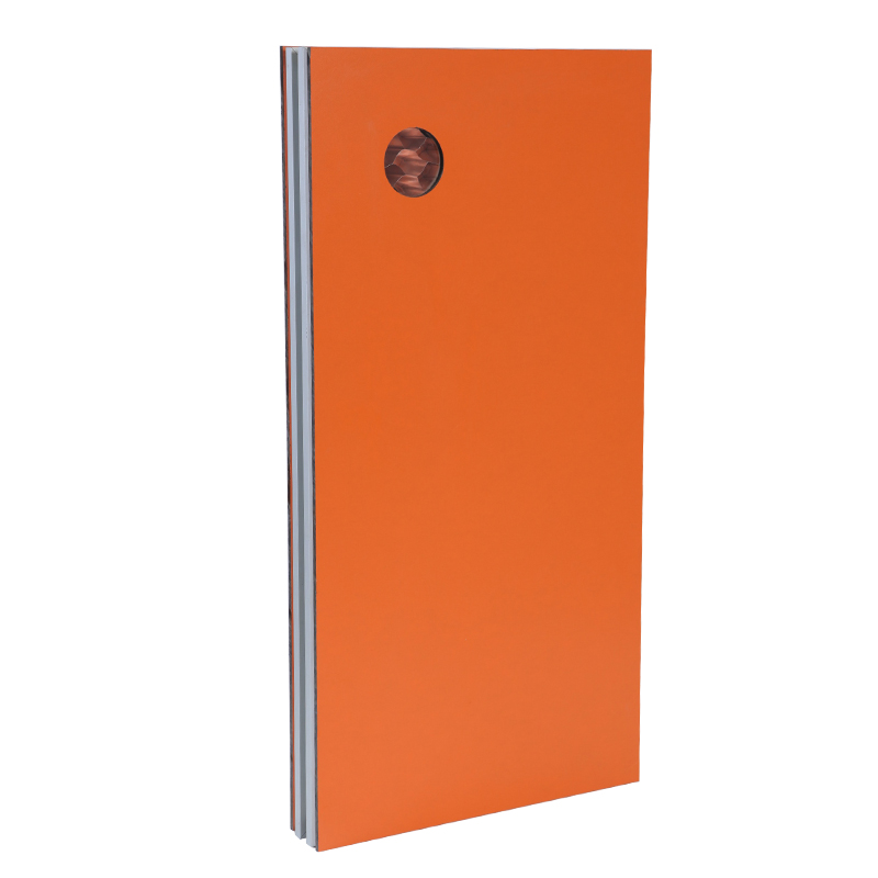 b. 芯材采用紙蜂窩,用熱固化膠在連續(xù)成型機(jī)內(nèi)熱加壓復(fù)合而成的超輕建筑板材;